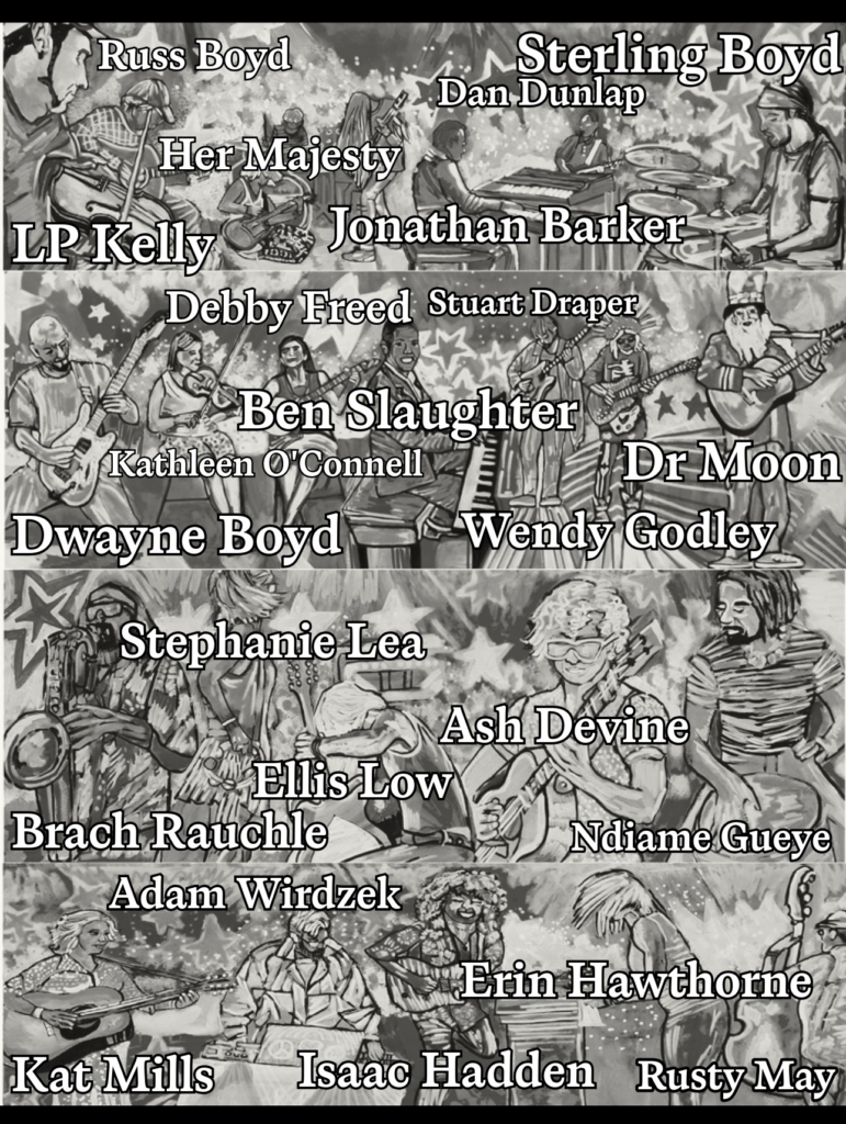 FEATURING: Russ Boyd, Sterling Boyd Jr, Dan Dunlap, Her Majesty, Jonathan Barker, LP Kelly, Debby Freed, Stuart Draper, Ben Slaughter, Kathleen O’Connell, Dr Moon, Dwayne Boyd, Wendy Godley, Stephanie Lea, Ash Devine, Ellis Low, Brach Rauchle, Ndiame Gueye, Adam Wirdzek, Erin Hawthorne, Kat Mills, Isaac Lee Hadden, Rusty May, Adam Sowder, Bio Ritmo